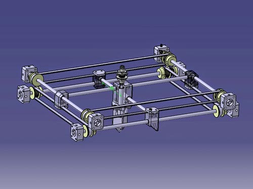 За допомогою чотирьох великих і двох маленьких ременів і гладких загартованих валів починає рухатися друкуюча голова з дуже гідною швидкістю. Як результат – якість друку у 3D принтерів з таким чином побудованою кінематикою, одна з найкращих. Детальніше кінематична частина 3D принтера :