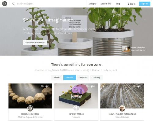 - YouMagine (YouMagine – YouMagine – Where makers collaborate on 3D designs 🚀): YouMagine является веб-сайтом сообщества, которым управляет Ultimaker с открытым исходным кодом компании 3D-принтера, где пользователи могут загружать и обмениваться файлами для 3D-принтера. Создан в 2013 году. Сайт имеет некоторые хорошо разработанные элементы, а также бесплатные STL файлы, которые можно скачать и начать работать с ними на любом 3D-принтере.