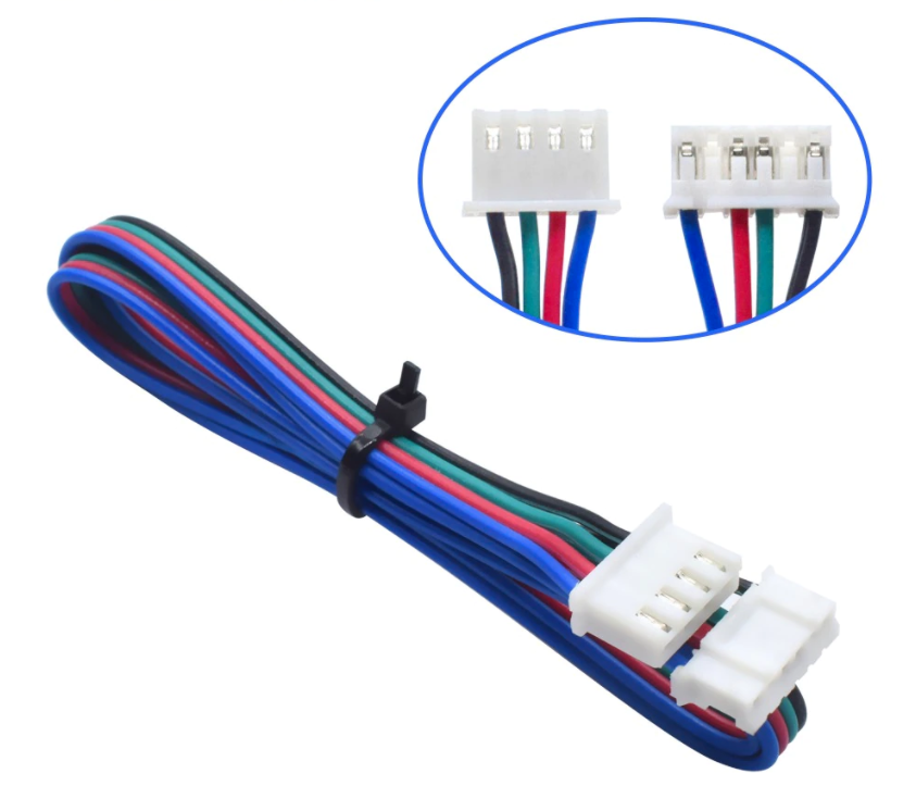 Кабель для крокового двигуна – це 4 житловий провід для підключення двигуна до плати 3д принтера. На кінцях шлейфу знаходяться спеціальні конектори для підключення. З одного боку 4 pin, з іншого – 6 pin.