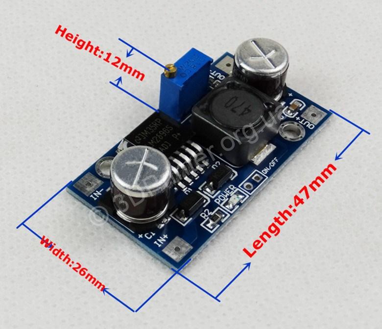 - вихідна напруга: 3 – 35В (регулюється підлаштовним резистором розташованим на платі)