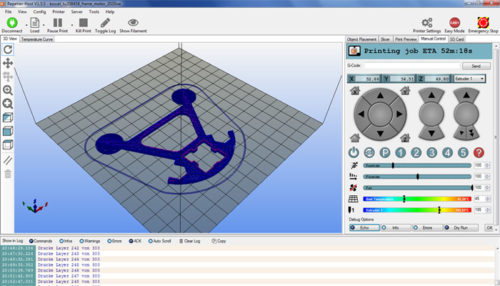 Repetier-Host – це слайсер та керуюче програмне забезпечення дуже популярне у спільноті RepRap, воно також з відкритим вихідним кодом та безкоштовне. Repetier-Host – це комплексне рішення, наприклад, за допомогою кількох екструдерів до 16 екструдерів – воно може одночасно обробляти різні нитки та кольори, щоб ви могли візуалізувати результат перед друком. Repetier-Host вже включає 4 різних слайсера, Slice3r, Slic3r Prusa Edition, CuraEngine і Skeinforge, але ви можете включити будь-який інший слайсер, який вам потрібен, що означає, що це програмне забезпечення підходить практично для будь-якого 3D- принтера FDM. Нарешті, ще одна цікава особливість полягає в тому, що ви можете завантажувати чи дублювати стільки моделей, які відповідають вашій складальній пластині, та друкувати їх одночасно.