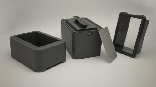 - Ono 3 Piece Cube – коштує $99. Телефон потрібно покласти в основу корпусу, що відокремлює його від смоли. Сам куб складається з пластикових стінок, алюмінієвої пластини, що знімається, і плівки для друку.