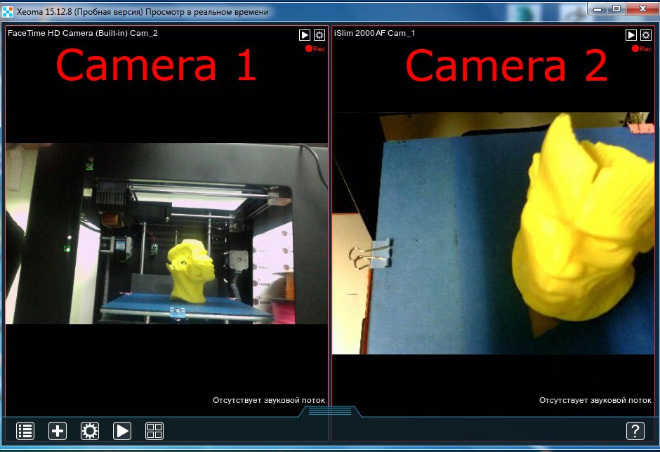Для реалізації повноцінного відеоспостереження за 3D печаткою однієї камери швидше за все Вам буде мало. У такому разі оптимально доповнити систему недорогим, а краще безкоштовним софтом для відеоспостереження. Яскравим представником такого софту є програма Xeoma .