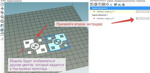 Для того, щоб 3d друку не розчарував, важливо пам’ятати, що для програмного забезпечення будь-якого принтера для тривимірного друку модель, що складається з двох кольорів, – це два різні файли STL. У зв’язку з цим, щоб такий друк став можливим, модель необхідно в 3Д редакторі розділити на два кольори. Після цього можна завантажити в репітер-хост обидві моделі та присвоїти одній з них параметр роботи з другим екструдером. Здійсніть суміщення, використовуючи спеціальне налаштування, і перемістіть модель таким чином, щоб обидві її частини опинилися в одній спільній групі. Детальніша інструкція представлена ​​в ілюстраціях.