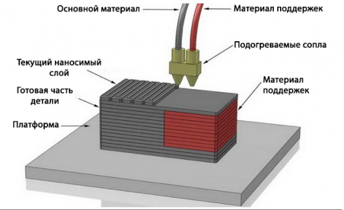 Сьогодні принтери з двома екструдерами використовуються для друку моделей та їх підтримки різними матеріалами. Іноді підтримки, які при закінченні роботи все одно будуть видалені, друкують дешевшим пластиком, що дозволяє заощаджувати матеріал високої якості та зберігати його для роботи над основними об’єктами. Останнім часом широко поширений 3D друк підтримки з розчинного у воді PVA пластику – це серйозно економить час, позбавляючи рутинного процесу видалення допоміжних елементів з деталі.